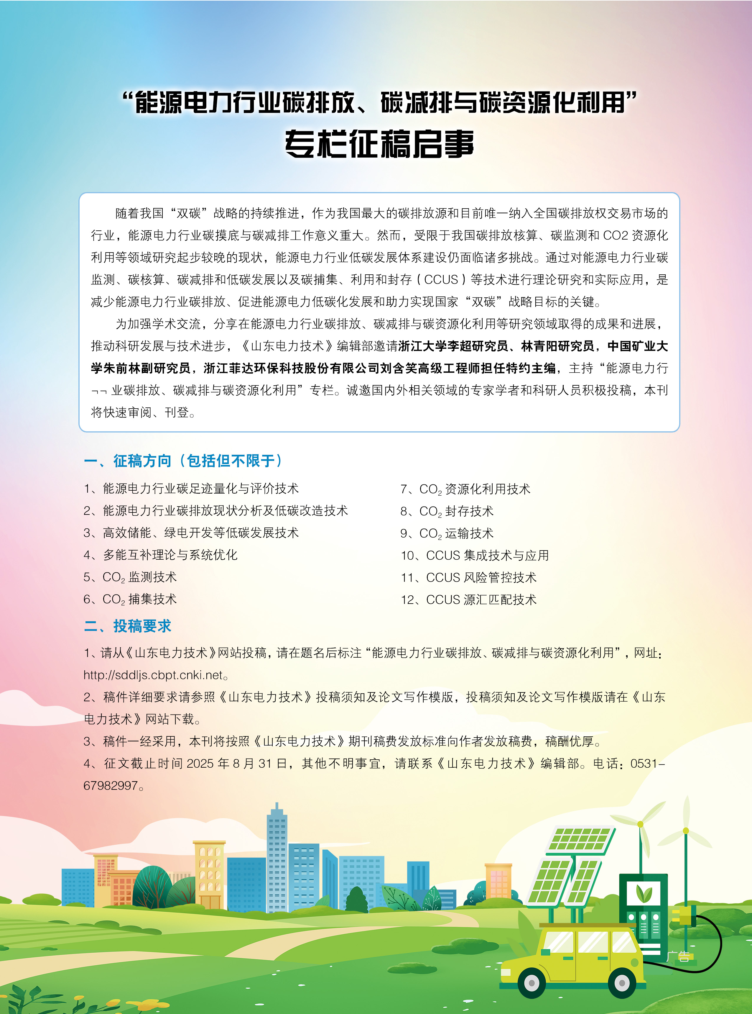 【征稿启事】“能源电力行业碳排放、碳减排与碳资源化利用”专栏