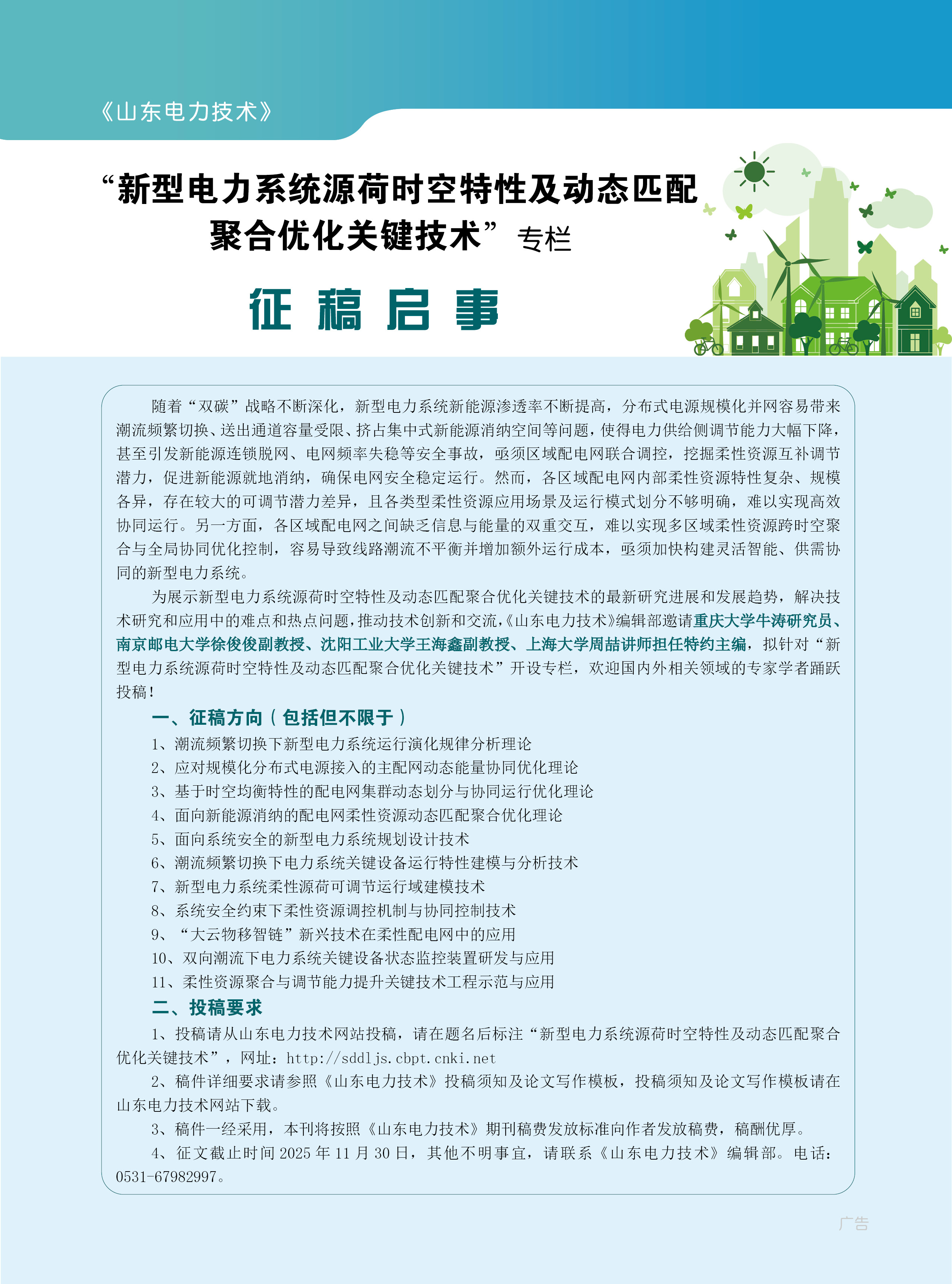 【征稿启事】“新型电力系统源荷时空特性及动态匹配聚合优化关键技术”专栏